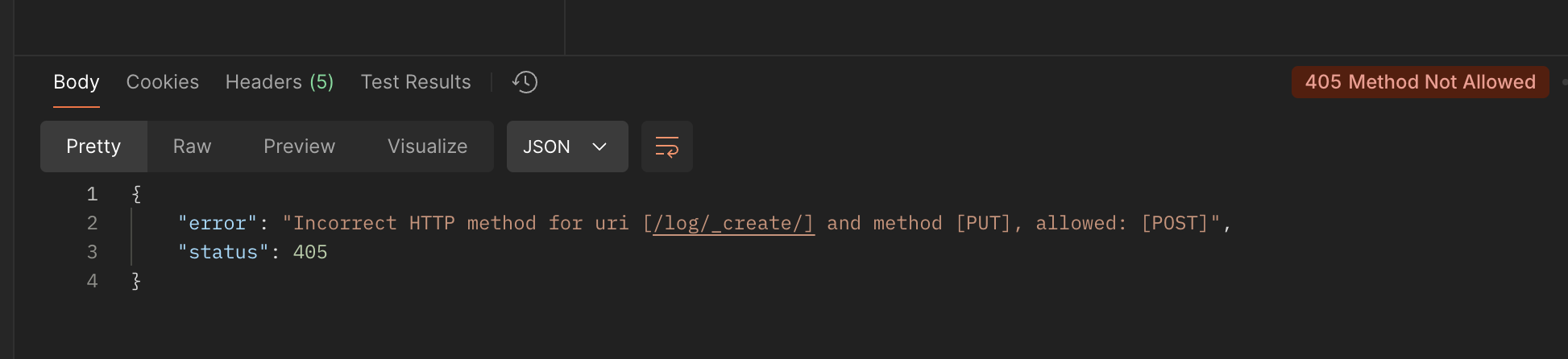 실패시 우측 상단에 빨간색으로 상태코드가 나오고 에러 메세지를 통해 에러가 난 원인에 대해서 알수 있습니다.