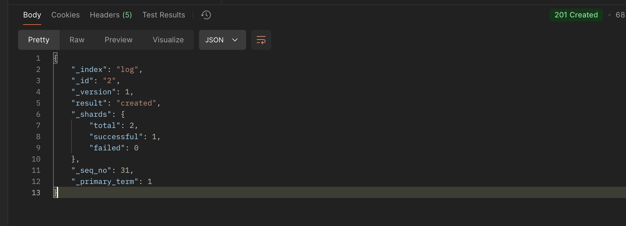 | 201 Created | 성공 (2xx) | 요청으로 인해 새로운 리소스가 성공적으로 생성됨. | 새 문서를 인덱스에 추가한 경우. |